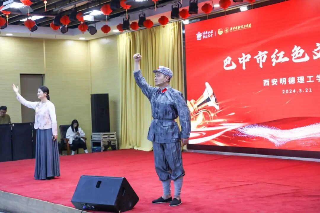 3月21日,由巴中市文化广播电视体育和旅游局主办,川陕革命根据地旧址(巴中)管理局、通江县文化广播电视和旅游局承办的“巴中市红色文化宣讲”走进西安外国语大学长安校区和西安明德理工学院长安校区,为学校师生呈现了一场极具特色的红色文艺展演。