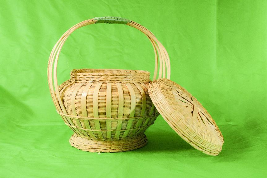 工艺描述:竹编“提篮”是中国传统的手工艺品,它通常选用生长2年以上,竹节长度至少为45厘米的慈竹作为原料为主要材料,通过精细的编织工艺制作而成,承载了中国民间的传统智慧和文化价值,其制作过程融合了实用性与艺术性,具备了轻便、结实、透气等特点,在日常生活中用途广泛,颜色为本色。