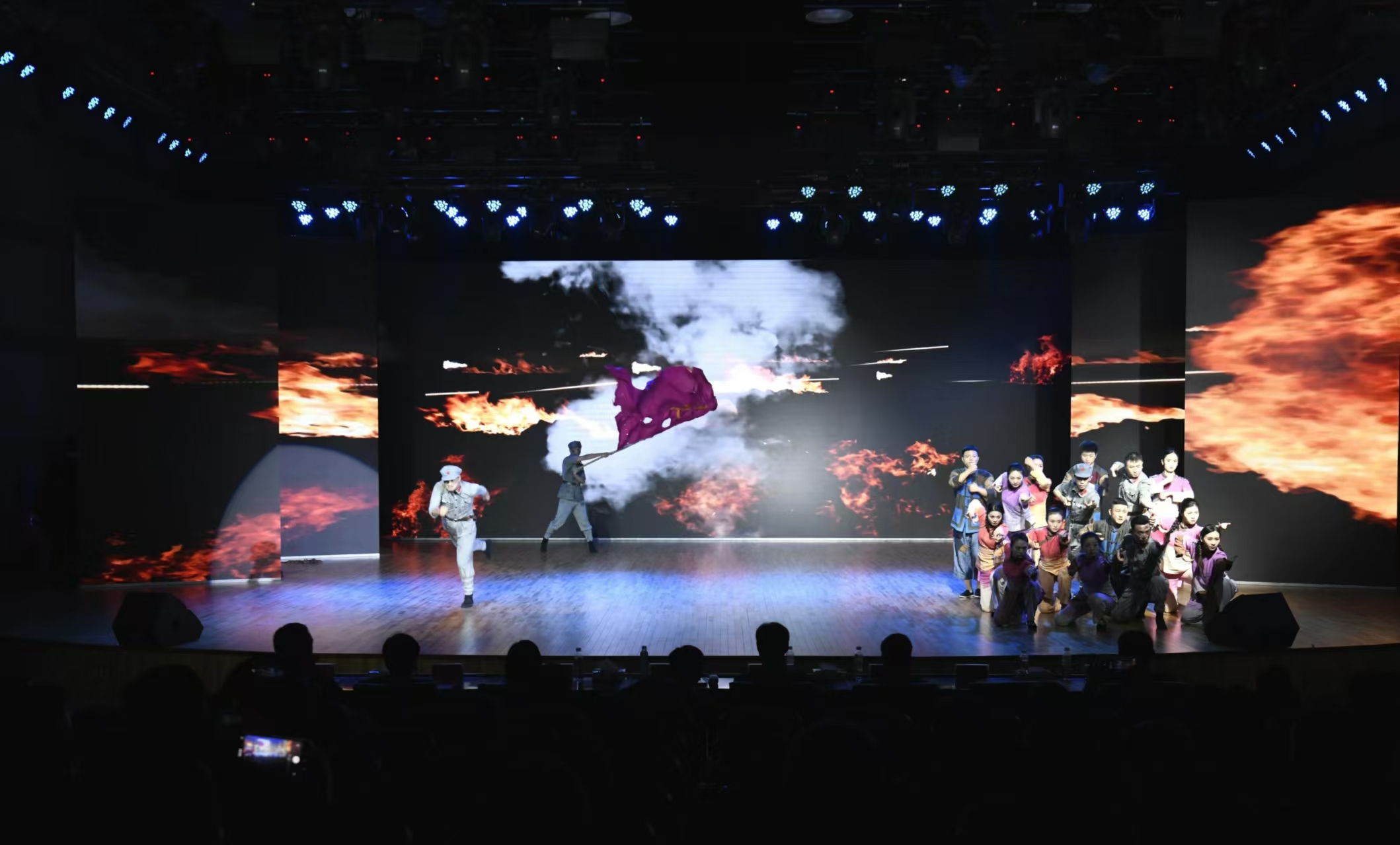 通江红色文化厚重,是川陕苏区首府,被毛泽东同志誉为“中华苏维埃共和国的第二个大区域。”当年,通江不足23万人就有近五万人参加红军,赤化全川、平分土地……这些红色标语是他们血的印记,无数革命先烈壮烈牺牲,仅川陕革命根据地红军烈士陵园就长眠着二万五千多名红军英烈。舞蹈《石破天惊》以红军当年在通江錾刻石刻标语“赤化全川”为创作背景,通过艺术的形式,再现了红军发动革命宣传,和敌人战斗的情景。带领现场观众走进那个战火纷飞的年代,缅怀为国家抛头颅洒热血的革命先烈,鼓舞后人奋勇前进,在新征程上勇毅前行。