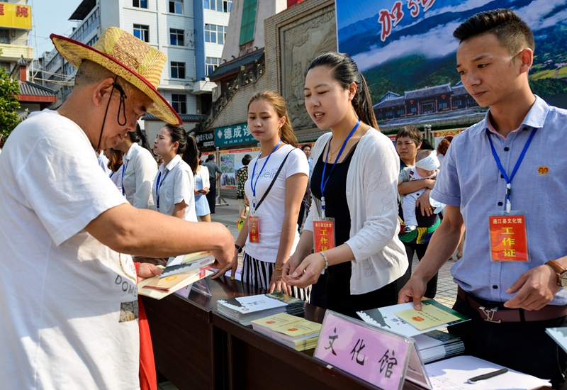 2016年6月11日是全国第11个文化遗产日,为充分展示我县“非遗”魅力,将独具特色的民族民间文化艺术成果呈献给广大观众,与群众互动交流,近距离感受传统文化之美,县文化馆组织文化工作者于11日当天在红军广场举行了大型非遗展览。此次活动发放了《中华人民共和国非物质文化遗产法》单读本和非遗宣传折页4000余份,大型宣传展示板20张,当天宣传受众估计8000余人。通过展览活动,宣传了《中华人民共和国非物质文化遗产法》,同时展示了我县非物质文化遗产挖掘和保护工作成果,让更多的人参与到了这项活动中来,达到“全民参与,共同保护”的目的。