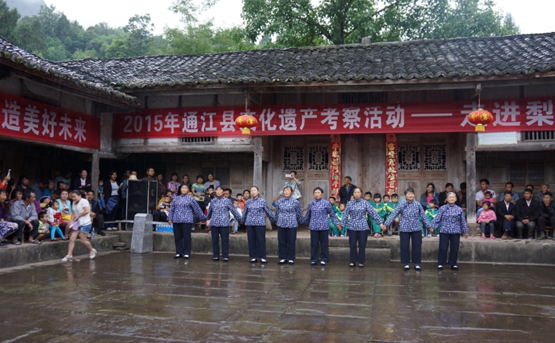 “巴山梨园民歌”是指通江县泥溪乡国家级传统村落梨园坝村的村民的原生态演唱艺术形式。有着悠远的历史和深厚的民间基础。她在唱腔、唱法上继承了“巴山民歌”的风格,也具有自己的地域特点。