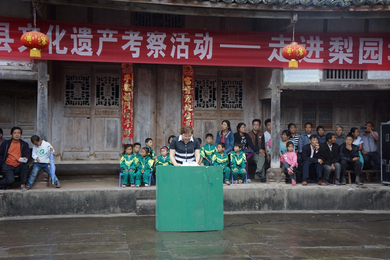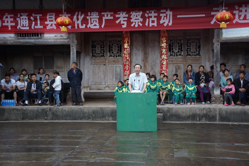 上午10点,活动开始。泥溪乡党委书记朱雪梅介绍了梨园坝古村落保护及申报情况。县文广新局党组书记、局长张宗凯讲话指出:通江历史悠久,文化厚重。我们应发挥优势资源,利用有利条件,进一步加大宣传力度,教育和引导广大人民群众积极参与文化遗产的保护工作,共同书写城镇化与文化遗产共同发展的美好画卷,奋力开创我县文化遗产保护新局面。